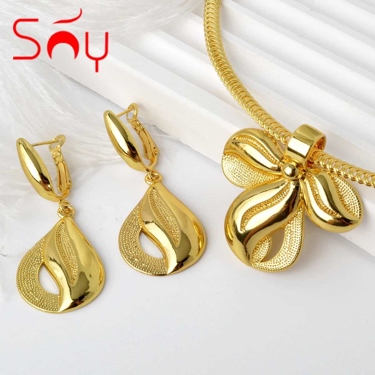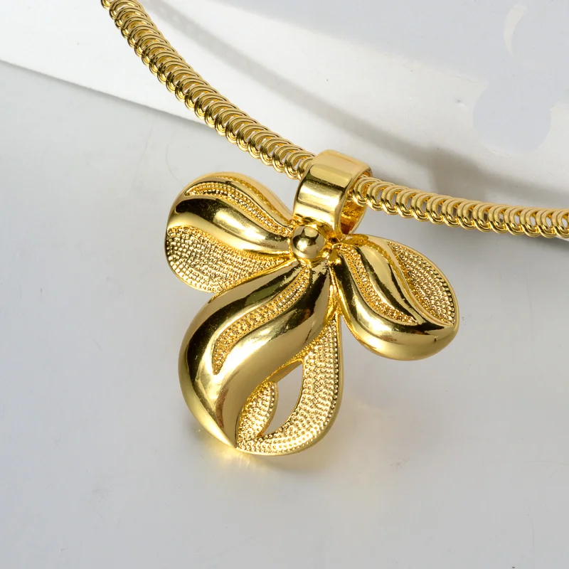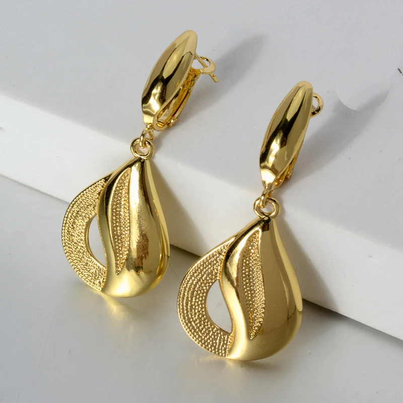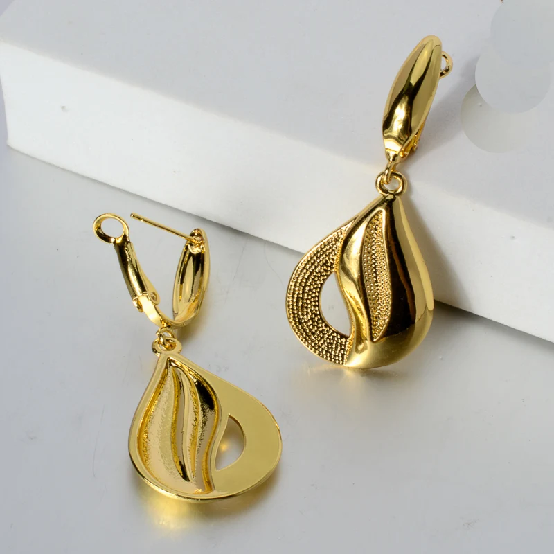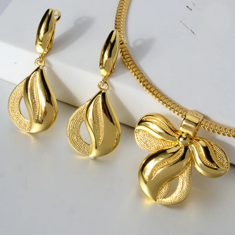 طقم مجوهرات مطلي ذهب 24K – قلادة وأقراط فاخرة بتصميم راقٍ للنساء